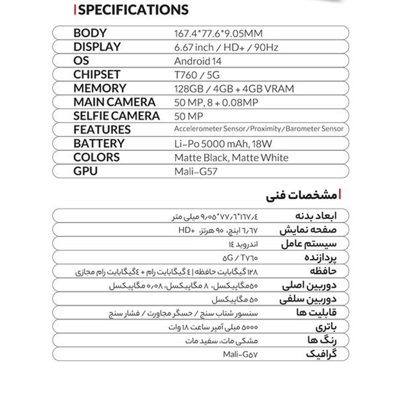 گوشی موبایل وکال مدل V2 Pro 5G دو سیم‌کارت ظرفیت 128 گیگابایت و رم 4 گیگابایت