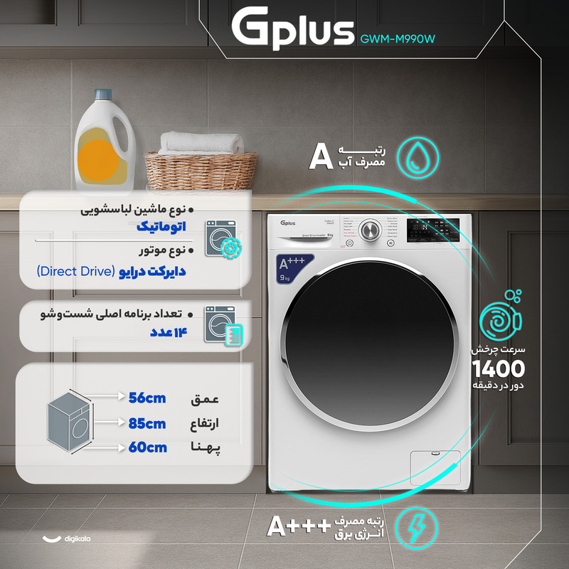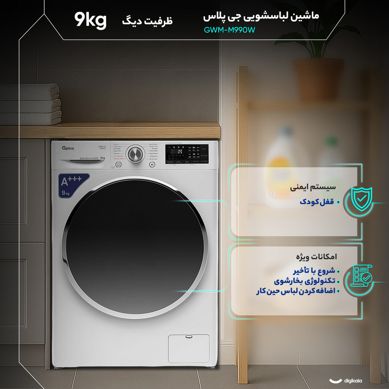 ماشین لباسشویی 9 کیلوگرم اتوماتیک جی پلاس مدل GWM-M990W