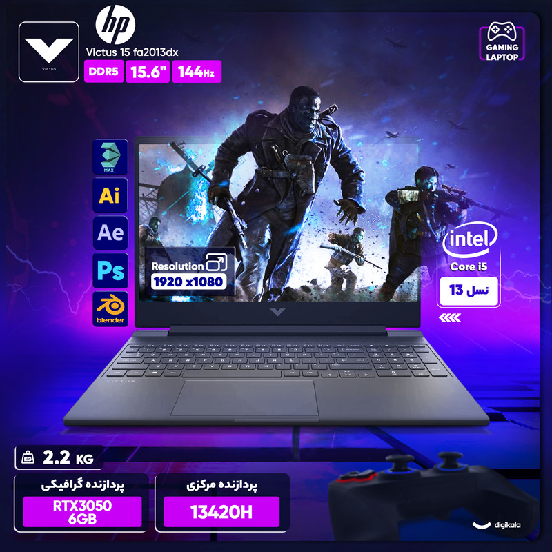 لپ تاپ 15.6 اینچی اچ‌پی مدل Victus 15 fa2013dx-i5 13420H-RTX3050 6GB-16GB DDR4 3200MHz-512GB SSD-W - کاستوم شده