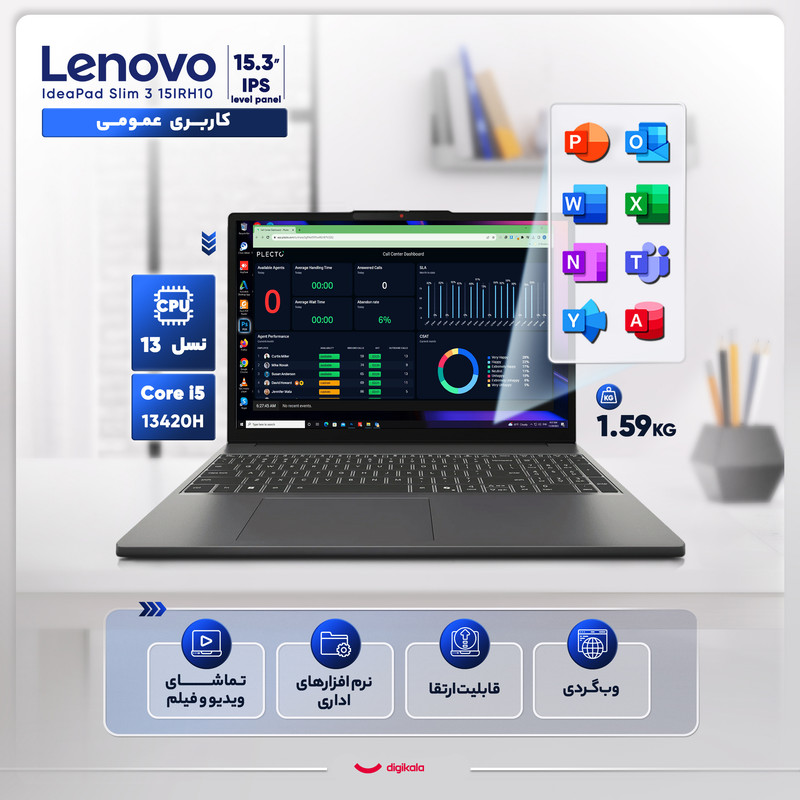 لپ تاپ 15.3 اینچی لنوو مدل IdeaPad Slim 3 15IRH10-i5 13420H-8GB DDR5-512GB SSD-IPS