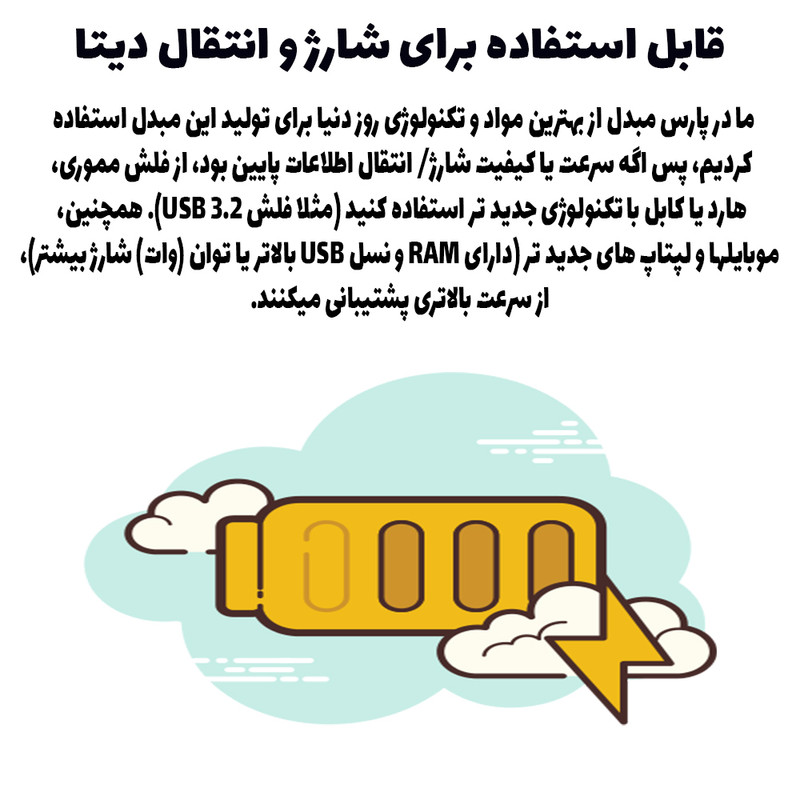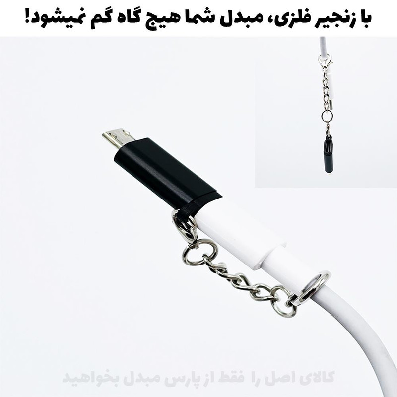 سایر توضیحاتبدنه فلزی بسیار با کیفیت، دارای زنجیر برای جلوگیری از گم شدن محصول با اتصال به کیف و کابل شارژرابطهاUSB Type-C , microUSBابعاد2x1x1نوع مبدلمبدلرنگمشکی