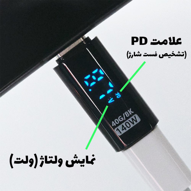 سایر توضیحات: قابلیت نمایش ولتاژ و توان واقعی در شارژ ماکسیمم نمایش توان: 35 وات ماکسیمم عبور توان: 140 وات دقت کنید عددی که روی شارژر نوشته شده، مشخصات اسمی شارژر هست و در عمل با اون توان شارژ نمیشه درصد دقت: 0.1 ولت و 0.1 وات