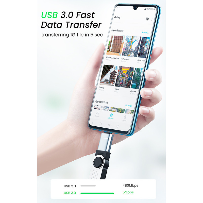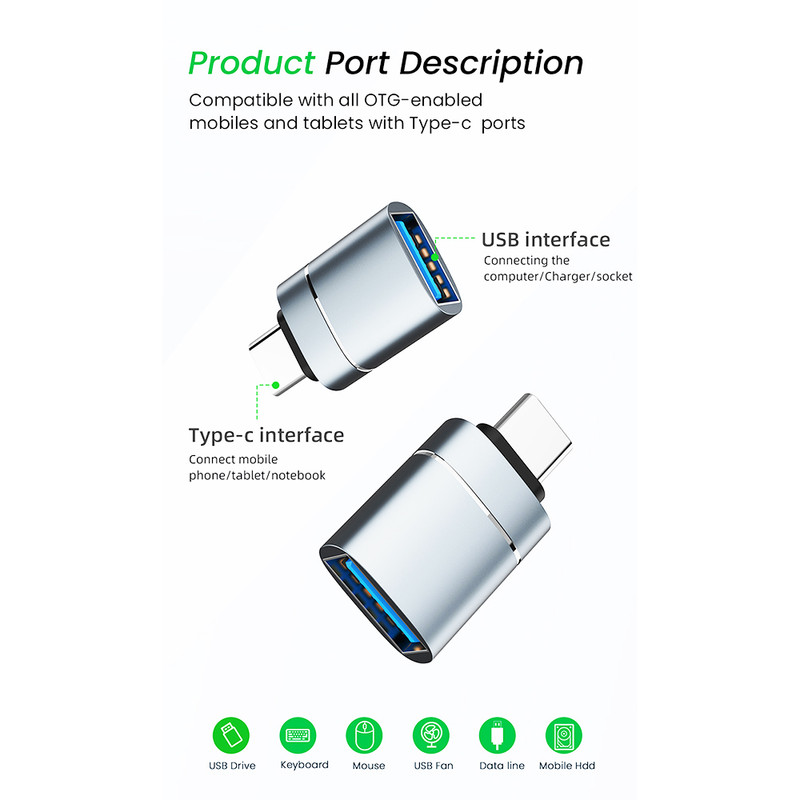 مبدل او تی جی شیک با بدنه زیبا و مستحکم آلومینیومی و سرعت انتقال اطلاعات بالا، نیاز شما به انتقال اطلاعات و یا شارژ تلفن همراه تان کاملا برطرف میکند. این مبدل، امکان اتصال به کامپیوتر و یا آداپتور ، فلش مموری، هارد اکسترنال، کنسول، پرینتر، رم ریدر، و پاوربانک دارای پورت TYPE-C را نیز پشتیبانی میکند. این ابزار، همراهی کارا و هدیه ای خوش قیمت برای عزیزان تان میباشد. لازم به ذکر است، جهت کار با این مبدل، دستگاه تلفن همراه شما حتما باید از قابلیت OTG پشتیبانی کند (اکثر اسمارتفون های امروزی این قابلیت را دارند) و همچنین، برای استفاده از قابلیت پرینتر و کارت شبکه، قابلیت اتصال به این دستگاهها را داشته باشد. سرعت انتقال اطلاعات این مبدل، بسته به پورت میزبان،تا 5 گیگابیت بر ثانیه افزایش می یابد ( در صورت استفاده از فلش USB 3.0 به بالا، انتقال 1 گیگ فیلم در کمتر از 1 دقیقه). لطفا، در نظر داشته باشید که هر کالا قبل از ارسال مورد تست فنی قرار میگیرد، بنابراین، در صورت عدم شناسایی دستگاه متصل به مبدل، ابتدا از نبودن مانع فیزیکی (مثلا بعضی از گارد های ضخیم) و اتصال درست در هر دو طرف مبدل اطمینان حاصل کنید و در مرحله ی بعد، مبدل را با فلش مموری و اسمارتفون دیگری امتحان کنید تا از سازگاری کامپیوتر و یا تلفن همراهتان، مطمئن شوید.