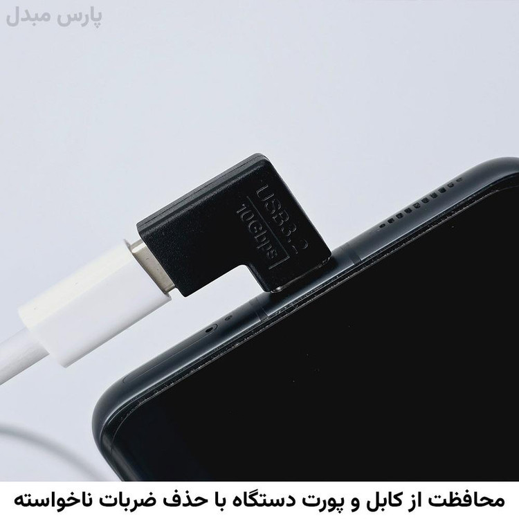 زاویه عمودی جهت محافظت از پورت تلفن هوشمند و لپتاپ- تغییر زاویه کابل تایپ سی، پشتیبانی از شارژ سریع- انتقال داده با سرعت بالا- جنس بدنه از پلاستیک فشرده و نشکن میباشد.