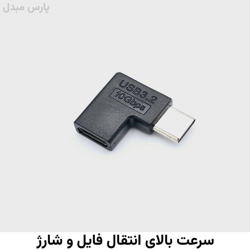 زاویه عمودی جهت محافظت از پورت تلفن هوشمند و لپتاپ- تغییر زاویه کابل تایپ سی، پشتیبانی از شارژ سریع- انتقال داده با سرعت بالا- جنس بدنه از پلاستیک فشرده و نشکن میباشد.