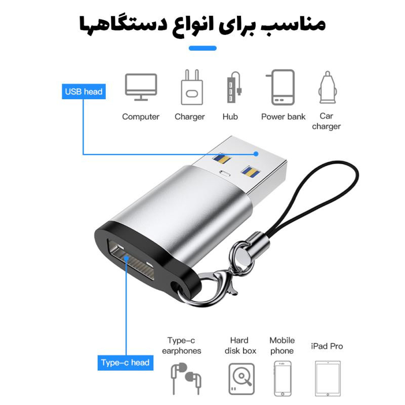 مبدل TYPE-C به USB 3.0 مدل Lanyard، ابزاری کارآمد است که هر پورت USB کامپیوتر شما را به پورت TYPE-C با سرعت بالا تبدیل میکند. این مبدل با بدنه آلومینیومی با کیفیت، به سرعت خنک میشود و مناسب برای انتقال دیتا با سرعت بالا و شارژ سریع است. این مبدل، یک وسیله ضروری برای مجموعه اکسسوریهای شما در کار و سفر است. در صورت بروز مشکل در شارژ یا انتقال داده، پورت یا کابل دیگری را امتحان کنید. سرعت شارژ و انتقال داده به ولتاژ دستگاه و جنس کابل شما بستگی دارد