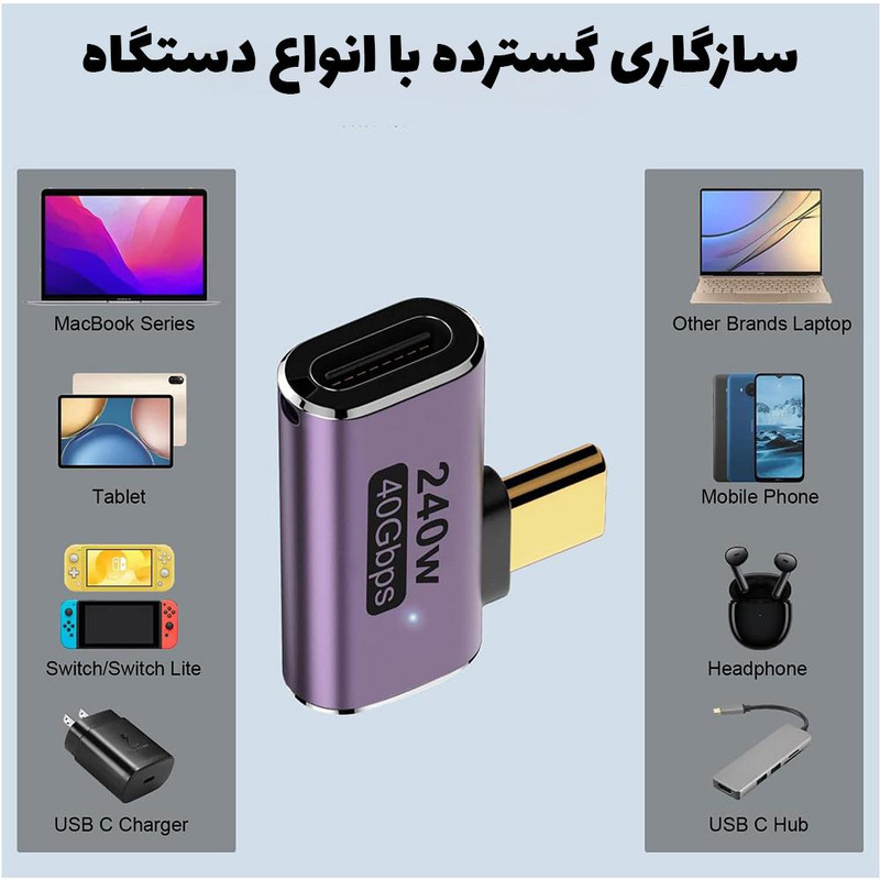 سایر توضیحات: تبدیل دو سر تایپ سی USB 4.0 راستگرد و چپ گرد/ دارای چراغ اتصال/ دارای بدنه روکش فلزی/ توان شارژ تا 240 وات/ سرعت انتقال فایل تا 40 گیگابیت بر ثانیه/ تبدیل سازگار با اندروید، آیفون 15 به بالا، ویندوز، مک/ بدون نیاز به نصب نرم افزار اضافه